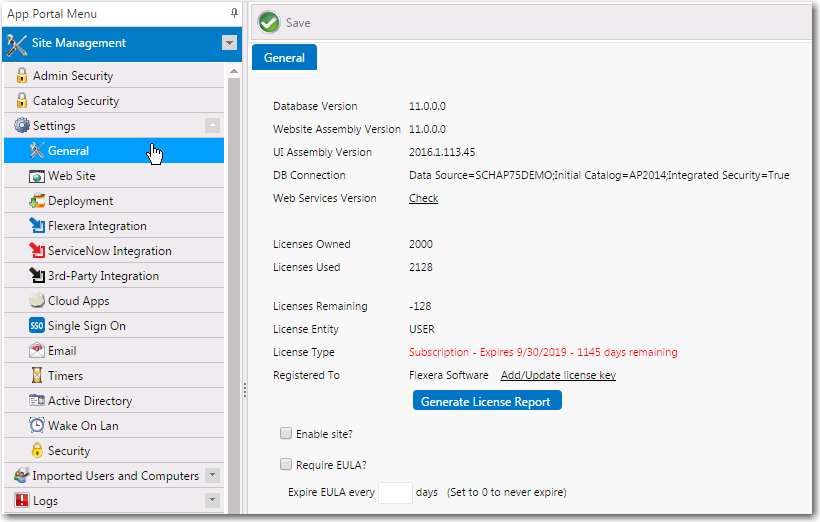 - Under Site Management , select Settings . The General tab of the Settings View opens.